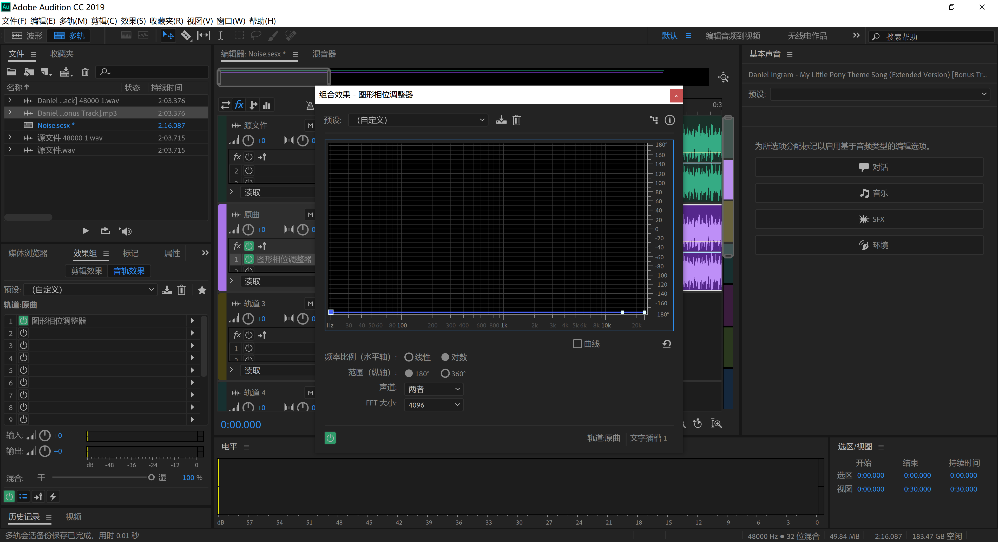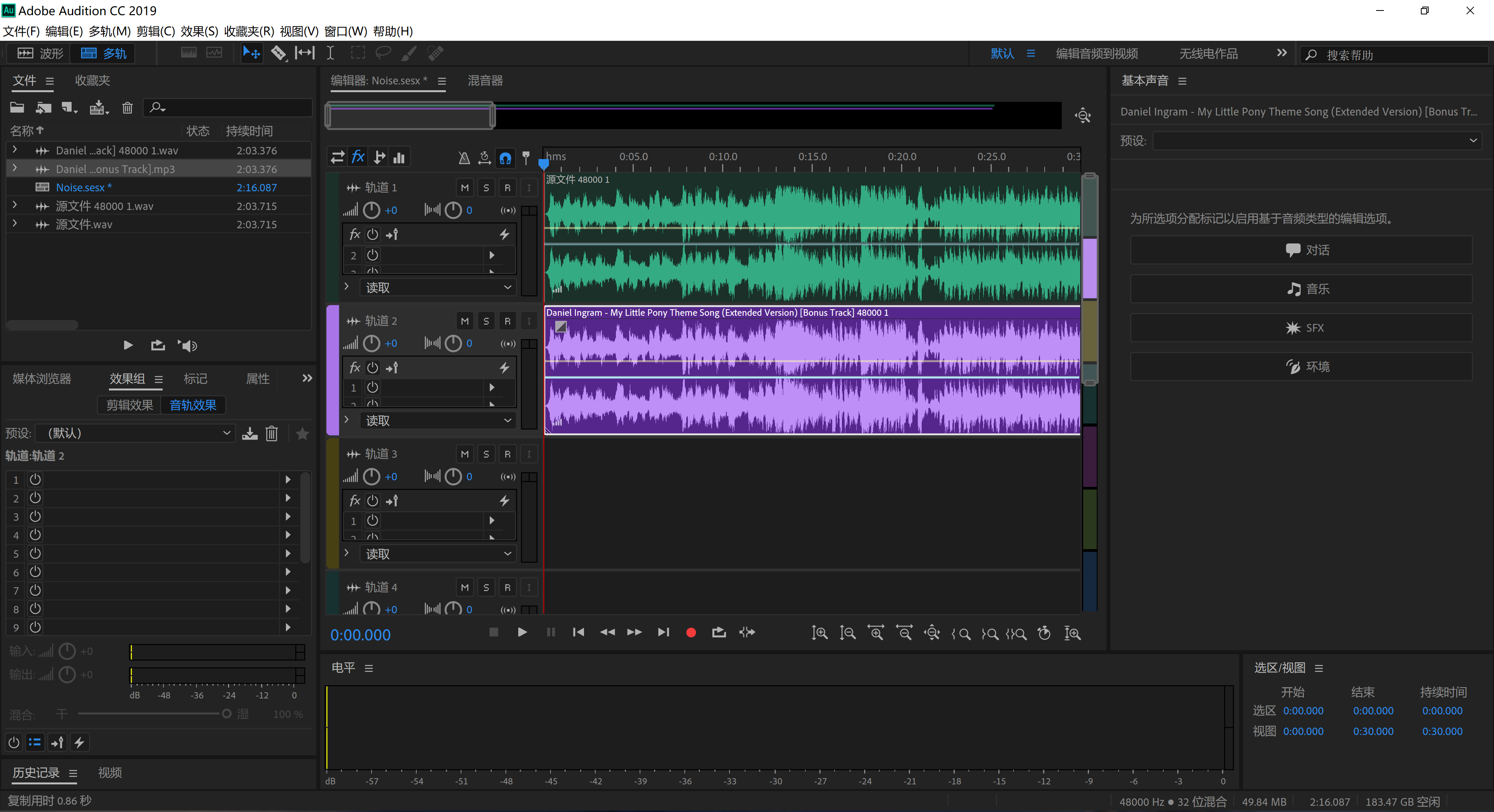 1、打开AU,新建多轨工程,导入源文件和从网易云下载的原曲《My Little Pony Theme Song》